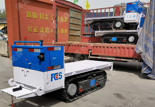 菲克森設(shè)計(jì)的礦用履帶式平板運(yùn)輸車,結(jié)合井下運(yùn)輸?shù)膶?shí)際工況,在結(jié)構(gòu)上進(jìn)行了改進(jìn)設(shè)計(jì)。在提高工作效率的同時(shí),革命性的解決了井下常規(guī)運(yùn)輸中的難題。